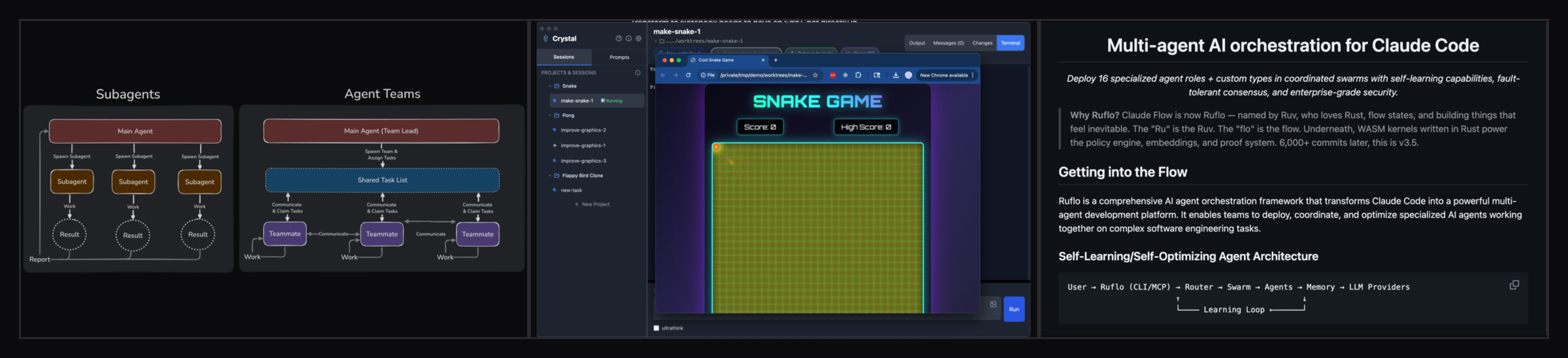 Claude Code is popular enough that an ecosystem of third-party multi-agent tools has appeared. Several were renamed in 2025-2026 as the space matured: Claude Flow became Ruflo, Crystal became Nimbalyst. Here is what each one actually does, with screenshots where the tool has a visual UI: